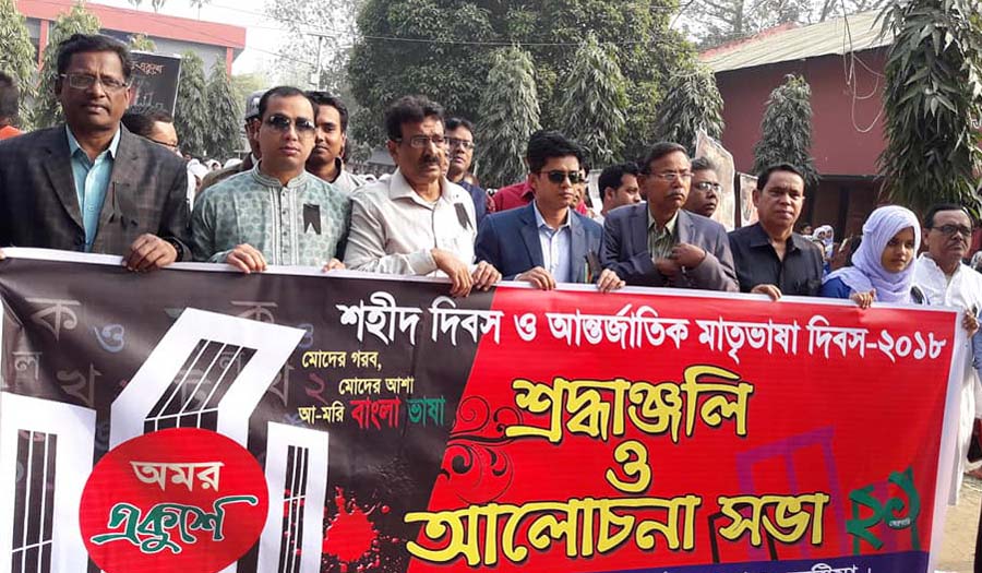 দৌলতপুর প্রতিনিধি:কুষ্টিয়ার দৌলতপুরে যথাযোগ্য মর্যদায় আন্তর্জাতিক মাতৃভাষা ও শহীদ দিবস পালিত হয়েছে। দিবসের প্রথম প্রহর রাত ১২.০১টায় স্থানীয় সংসদ সদস্য, উপজেলা পরিষদ ও উপজেলা প্রশাসনসহ বিভিন্ন সংগঠন উপজেলা পরিষদ চত্বরের কেন্দ্রীয় শহীদ মিনারে পুষ্পস্তবক অর্পন করে ভাষা শহীদদের প্রতি শ্রদ্ধা নিবেদন করেন। সকাল ৯টায় দৌলতপুর উপজেলা প্রশাসনের উদ্যোগে একটি র্যালি বের হয়। র্যালিটি উপজেলা পরিষদ চত্বরের বিভিন্ন সড়ক প্রদক্ষিন করে। এতে অংশ নেন দৌলতপুর উপজেলা চেয়ারম্যান ফিরোজ আল মামুন ও দৌলতপুর উপজেলা নির্বাহী অফিসার মো. তৌফিকুর রহমানসহ উপজেলা পরিষদের বিভিন্ন দপ্তরের কর্মকর্তা এবং বিভিন্ন শিক্ষা প্রতিষ্ঠানের শিক্ষক ও শিক্ষার্থী। র্যালি শেষে উপজেলা পরিষদ মিলনায়তনে অনুষ্ঠিত হয় আলোচনা সভা ও সাংস্কৃতিক অনুষ্ঠান। অপরদিকে দৌলতপুর কলেজ আন্তর্জাতিক মাতৃভাষা ও শহীদ দিবস উপলক্ষে বুধবার সকালে র্যালি, আলোচনা সভা ও সাংস্কৃতিক অনুষ্ঠানের আয়োজন করে। দৌলতপুর কলেজের অধ্যক্ষ মো. ছাদিকুজ্জামান-এর নেতৃত্বে একটি র্যালি কলেজ চত্বর থেকে বের হয়ে উপজেলা পরিষদ চত্বরের কেন্দ্রীয় শহীদ মিনারে পুষ্পস্তবক অর্পন করা হয়। এরপর দৌলতপুর কলেজের বিভিন্ন বিভাগ শহীদ মিনারে পুষ্পস্তবক অর্পন করে ভাষা শহীদদের প্রতি শ্রদ্ধা নিবেদন করে। শ্রদ্ধা নিবেন শেষে সংক্ষিপ্ত আলোচনা সভা ও বিশেষ দোয়া অনুষ্ঠিত হয়। এছাড়াও বিভিন্ন সংগঠন ও শিক্ষা প্রতিষ্ঠান দিবসটি যথাযোগ্য মর্যদায় পালন করে।