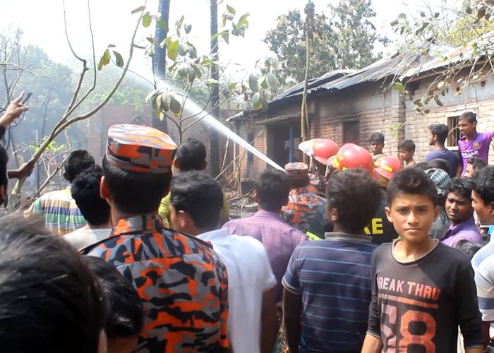 এলাকাবাসী জানান হঠাৎ সকাল ১১ টার দিকে আগুন দেখতে পাই, আগুন বেগতিক হওয়াতে মুহুর্তে সারা বাড়ীতে ছড়িয়ে পড়ে। সাদেকের স্ত্রী জানান বিদুৎতের ডপতাঁর থেকে আগুনের সূত্র পাত হয়েছে, আমরা বুঝে ওঠার আগেই বিদুৎ এর তারে আগুন লেগে গেলে আগুন সারা বাড়ীতে ছড়িয়ে পড়ে। আমার বসত ঘরে থাকা কোন জিনিস আমি বাহির করতে পারিনি, আমার নগদ ৫০ হাজার টাকা ছিল ঘরে, এ ছাড়াও বসত ঘর সহ ৫ টা ঘর, জমির দলিল, টিভি,২ টা খাট সহ সব জিনিস পত্র পুড়ে ছাই হয়ে গেছে। সাদেক জানান হঠাৎ আগুন সারা বাড়ীতে ছড়িয়ে পড়ে, আমরা ৩ বার আপরেশণ করেছি আমি আসহায় ও গরীব গ্রামের মানুষ আমাকে সাহায্য করেছিল বলে আমি বেঁচে আছি। আমাদের সব আগুনে পুড়ে গেছে আমাদের ক্ষতির পরিমান প্রায় ২ লক্ষ টাকা। আমরা সরকারের কাছে সাহায্যের জন্য আবেদন করছি। উক্ত বিষয়ে সংরক্ষিত আসনের সদস্য জানান সাদেক অতি দরিদ্র মানুষ তাদের সব আগুনে পুড়ে ছাই আমি তাদের যত টুকু পারি সাহায্য করবো। ভেরামারা ফার্য়ার সার্ভিস ইনচার্জ প্রবীন কুমার দেবনাথ জানান আমরা এসে পৌঁছানোর আগেই সাধারন মানুষ প্রায় আগুন নিয়ন্ত্রণ এনেছে, তবে আমরা এসে পুরো আগুন নিয়ন্ত্রণে এনেছি সাদেক শাহ’র প্রায় ২ লক্ষ টাকার মত ক্ষতি হয়েছে । দৌলতপুর থানা অফিসার ইনচার্জ শাহ দারা খানের নেতৃত্বে এস আই নজরুল ইসলাম ঘটনা স্থল পরিদর্শন করেন ।