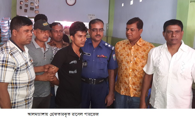 জামিরুল ইসলাম, চুয়াডাঙ্গা প্রতিনিধি:চুয়াডাঙ্গা জেলার আলমডাঙ্গা বধ্যভূমি অবমাননাকারী রাসেল পারভেজকে আলমডাঙ্গা থানা পুলিশ শহরের চন্দনা হোটেলের পাশ থেকে গ্রেফতার করেছে। শহরের চন্দনা হোটেলে ভ্রাম্যমান আদালতে রাসেলের ৬ মাস বিনাশ্রম কারাদন্ড প্রদান করেছেন উপজেলা নির্বাহী অফিসার আজাদ জাহান। উল্লেখ্য, গত ১৯ অক্টোবর আলমডাঙ্গা বধ্যভূমিকে অবমাননা করে রাসেল পারভেজ একটি যৌন উত্তেজনাকর ছবি তুলে ফেসবুকে পোস্ট করলে গত ২১ অক্টোবর শুদ্ধ সংস্কৃতি চর্চাকেন্দ্র ও সাম্প্রতিকী ডট কমের আয়োজনে এবং স্বয়ম্ভর লাইব্রেরির সহযোগীতায় স্বাধীনতা স্তম্ভ’৭১ চত্তরে একটি মানববন্ধন অনুষ্ঠিত হয়। এরপর গত ২৩ অক্টোবর উপজেলা নির্বাহী অফিসার বরাবর স্মারকলিপি প্রদান করলে আলমডাঙ্গা উপজেলা প্রশাসন ও আলমডাঙ্গা থানা পুলিশ বিষয়টি নিয়ে তৎপর হয়ে পড়ে। এরই প্রেক্ষিতে থানা পুলিশ বিশেষ অভিযান চালিয়ে শহরের চন্দনা হোপেটেলের পাশ থেকে রাসেল পারভেজকে আটক করে। সংবাদ পেয়ে উপজেলা নির্বাহী অফিসার আজাদ জাহান ভ্রাম্যমাণ আদালত পরিচালনা করে বকসিপুর গ্রামের ছামসুল হকের ছেলে রাসেল পারভেজ (২১) কে ৬ মাসের বিনাশ্রম কারাদন্ড প্রদান করেন। ভ্রাম্যমাণ আদালতে উপস্থিত ছিলেন থানা অফিসার ইনচার্জ আকরাম হোসেন, এসআই গফুর, এসআই আফজাল হোসেন, এসআই মহাব্বত আলীসহ সঙ্গীয় ফোর্স। তাকে চুয়াডাঙ্গা জেল হাজতে প্রেরণ করা হয়েছে।
