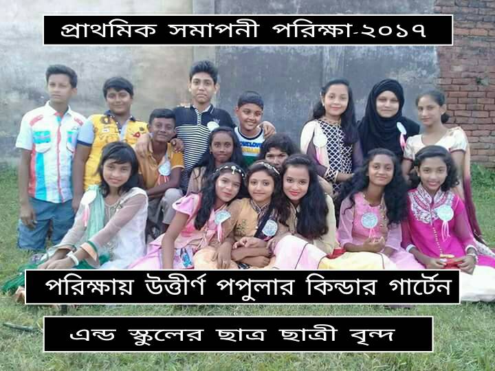 সাজেদুল ইসলাম টিটু,পাঁচবিবি(জয়পুরহাট)সংবাদদাতাঃ জয়পুরহাটের পাঁচবিবিতে পৌর এলাকায় প্রায় ৯ টি কিন্ডার গার্টেন স্কুলের মধ্যে পপুলার কিন্ডার গার্টেন এন্ড স্কুল “প্রাথমিক সমাপনি পরিক্ষা-২০১৭” শতভাগ পাশের কৃতিত্ব অর্জন করেছে। মোট পরিক্ষার্থী ১৭ জনের মধ্যে ১৩ জন জিপিএ-৫ এবং অবশিষ্ট ৪ জন এ গ্রেডে পাশ করে। অধ্যক্ষ আবুল কালাম চৌধুরী তার স্কুলের ছাত্র ছাত্রীদের সাফল্যে আনন্দ চিত্তে বলেন,ভবিষ্যতেও এ ধরনের রেজাল্টের ধারাবাহিকতা অব্যাহত রাখার চেষ্টা করা হবে। উল্লেখ্য,পাঁচবিবির অন্যান্য কিন্ডার গার্টেন স্কুল গুলোর মধ্যে ড্রিমল্যান্ড কিন্ডার গার্টেন স্কুল থেকে ৩১ জন পরিক্ষায় অংশ নিয়ে ১৬ জন পাশ করে।