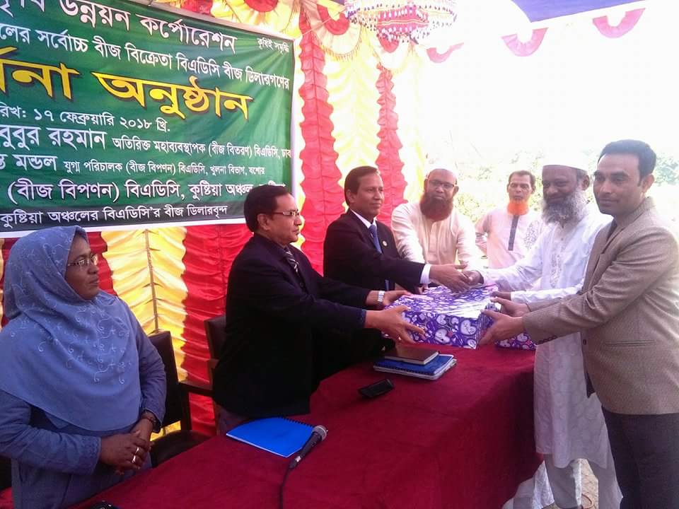 এস.এম.জামালঃ বাংলাদেশ কৃষি উন্নয়ন কর্পোরেশন ২০১৭-২০১৮ কুষ্টিয়া অঞ্চলের সর্ব্বোচ্চ বীজ বিক্রেতা বিএডিসি বীজ ডিলারগণের সংবর্ধনা প্রদান করা হয়েছে।