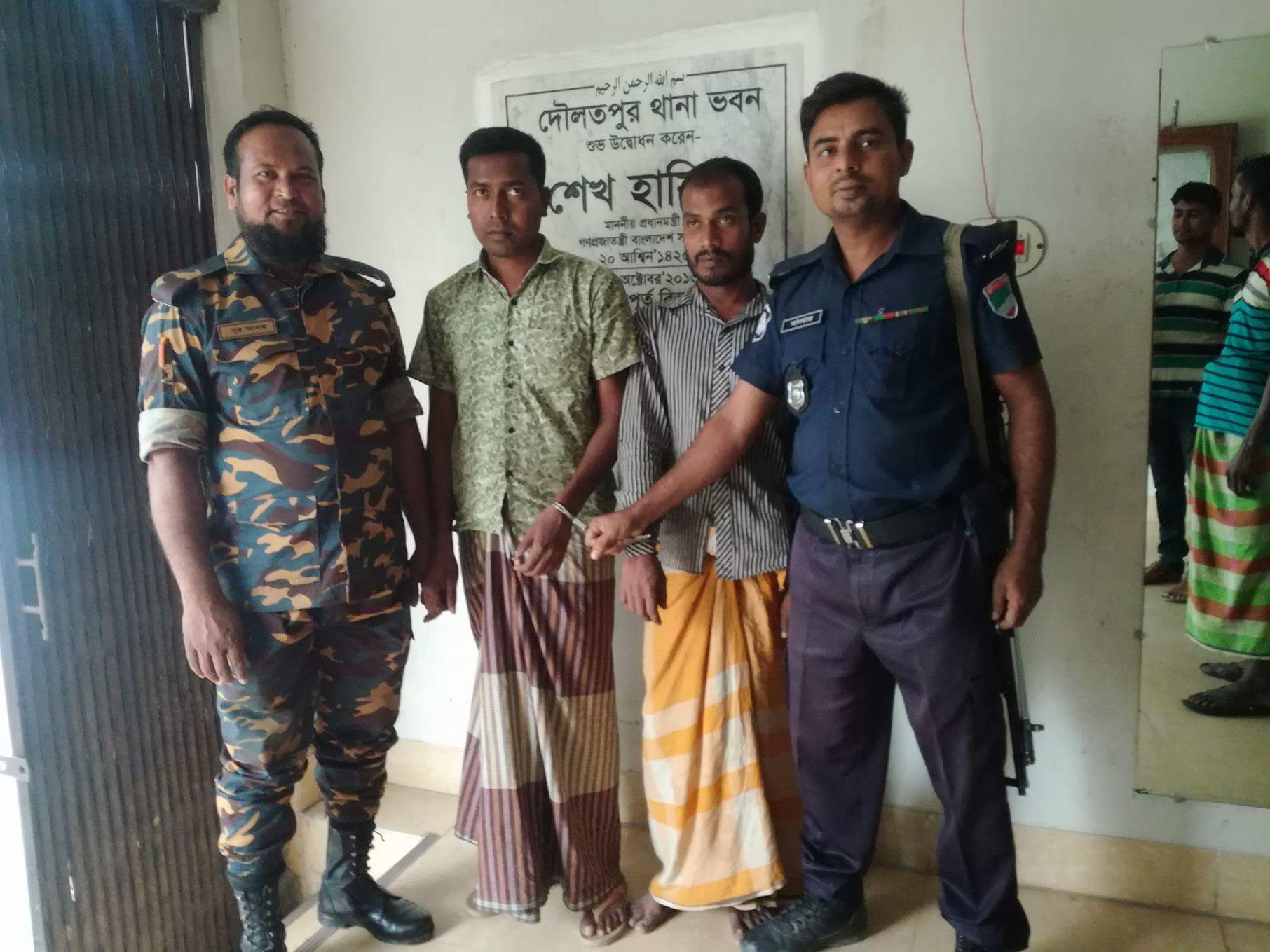 এব্যাপারে দৌলতপুর থানার ওসি শাহ্ দারা খাঁন পি.পি.এম জানান, গোপন সংবাদের ভিত্তিতে অভিযান চালিয়ে রাজন ও কলমকে আটক করা হয়েছে। তাদের নামে মাদকদ্রব্য আইনে পৃথক দুটি মামলা হয়েছে যাহার নং ৪৭,৪৮ তাং ৩১/০৩/১৮।