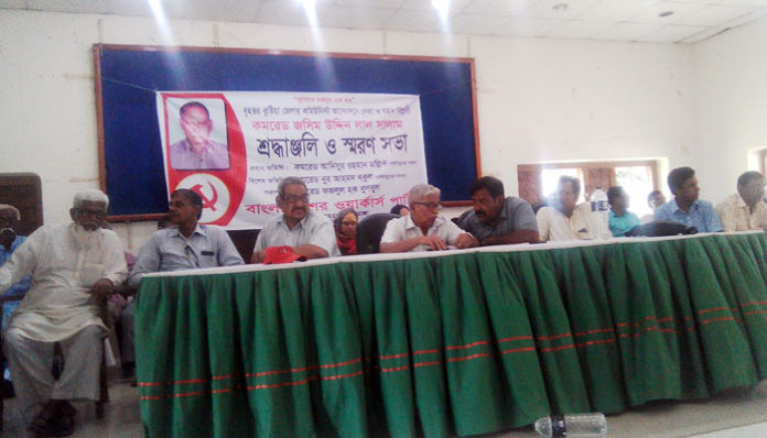 বিশেষ অতিথি হিসেবে উপস্থিত ছিলেন, কেন্দ্রীয় পলিট ব্যুরো, স্ট্যান্ডিং কমিটির সদস্য, নূর আহমদ বকুল, কমরেড বীর মুক্তিযুদ্ধা মজিবুর রহমান, কমরেড হাফিজ সরকার, কমরেড সিরাজুল ইসলাম, কমরেড আব্দুল মাবুদ। উক্ত স্মরণ সভাতে সভাপতিত্ব কেরন কমরেড ফজলুল হক বুলবুল। স্মরণ সভায় বক্তব্য রাখেন কমরেড মজিবুর রহমান,কমরেড সিরাজুল ইসলাম,নূর আহামেদ বকুল, কমরেড আনিছুর রহমান, কমরেড ফজলুল হক বুলবুল। স্মরণ সভায় বক্তারা কমরেড জসিম উদ্দিনের স্মৃতি চারণ করেন, তারা বলেন কমরেড জসিম দলকে নিজের জীবনের চেয়ে বেশী ভাল বাসতেন। আসুন আমরা তার ফেলে যাওয়া আর্দশকে বুকে ধারণ করে বাংলাদেকে লুটেরাদের হাত থেকে বাঁচায়।