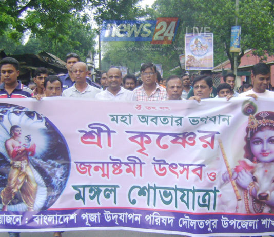 দৌলতপুরে শ্রীকৃষ্ণের জন্ম দিন উপলক্ষে জন্মাষ্টমী শোভাযাত্রা অনুষ্ঠিত
