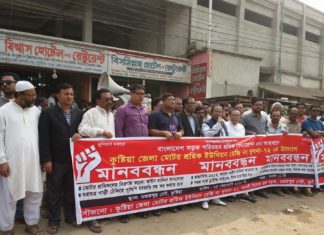 কুষ্টিয়া জেলা মটর শ্রমিক ইউনিয়নের মানববন্ধন