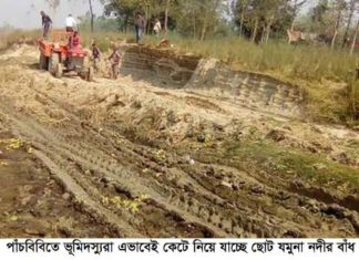 পাঁচবিবিতে বাঁধ কেটে নিয়ে যাচ্ছে ভূমি দস্যুরা