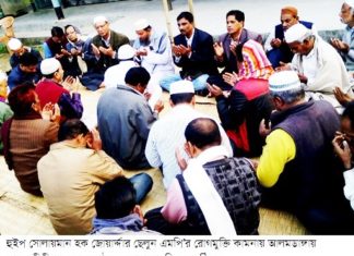 হুইপ সোলায়মান হক জোয়ার্দ্দার ছেলুন এমপি’র রোগমুক্তি কামনায় দোয়া মাহফিল অনুষ্ঠিত