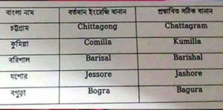 ৫ জেলার ইংরেজি নামের বানান পরিবর্তন